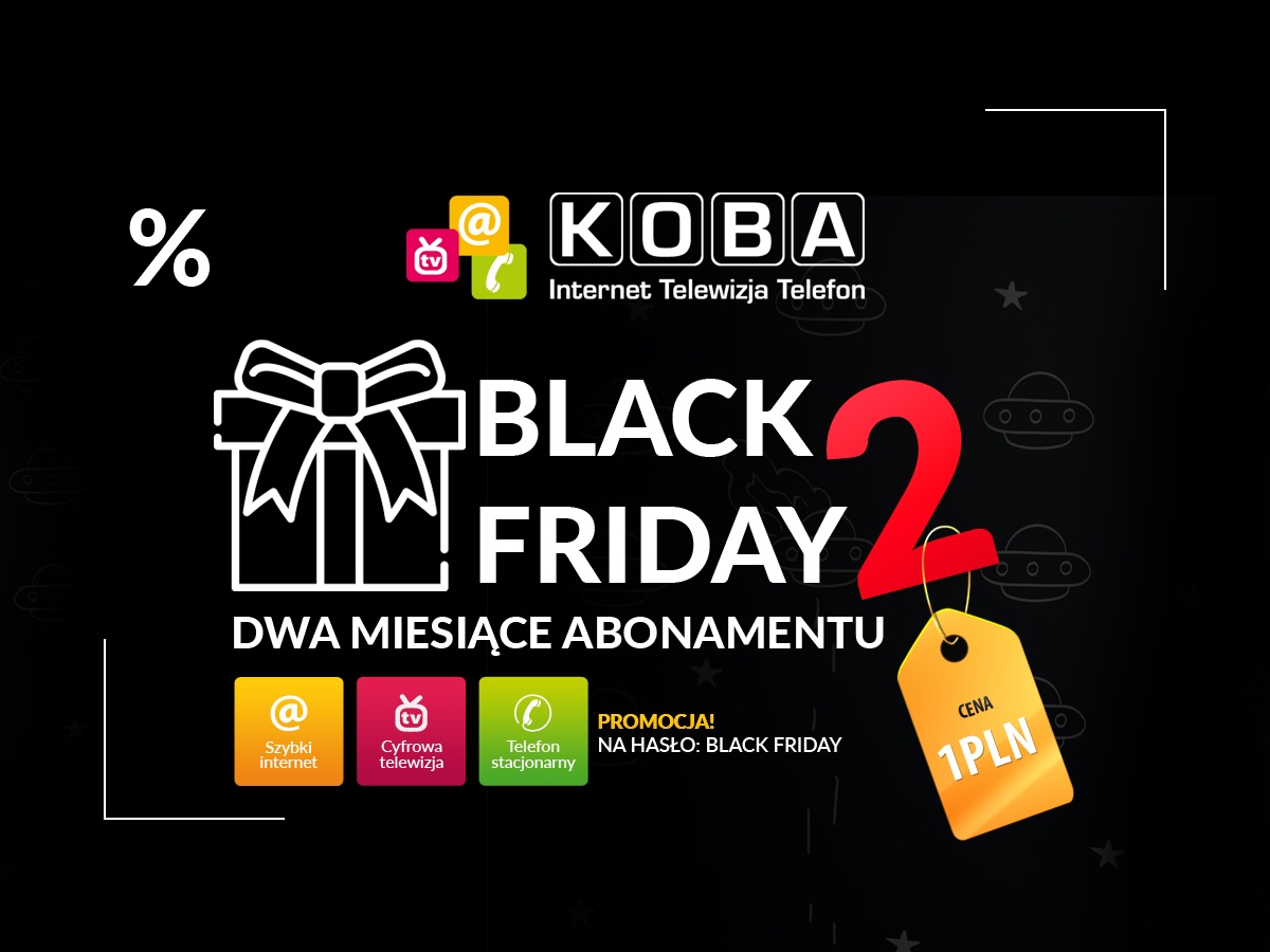 Już od 23.11.2018 przy podpisaniu umowy w Biurze Obsługi Klienta na hasło “BLACK FRIDAY” otrzymujesz od nas 2 MIESIĄCE ABONAMENTU* za ZŁOTÓWKĘ!