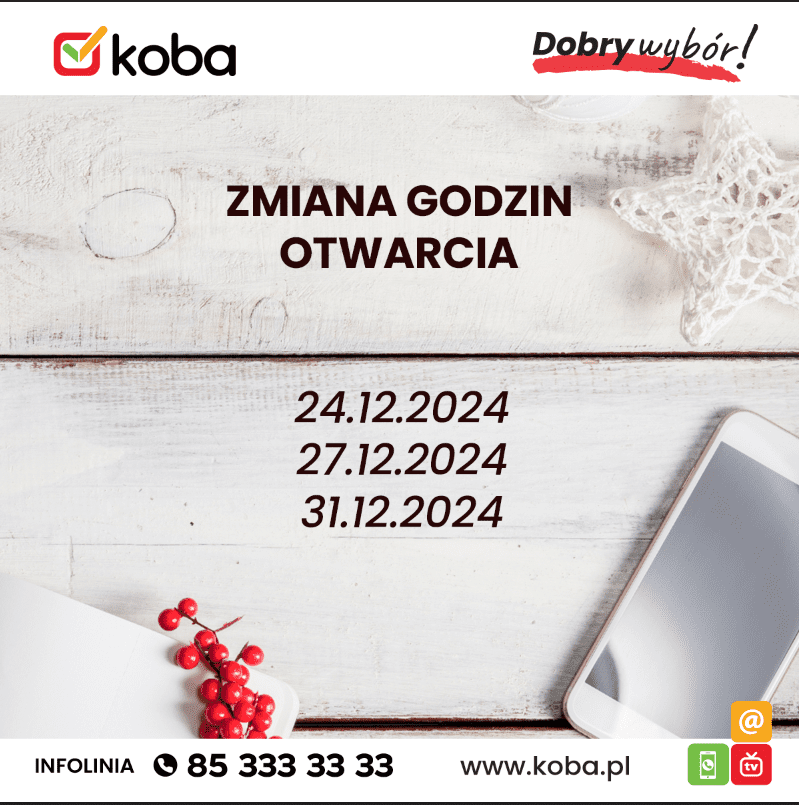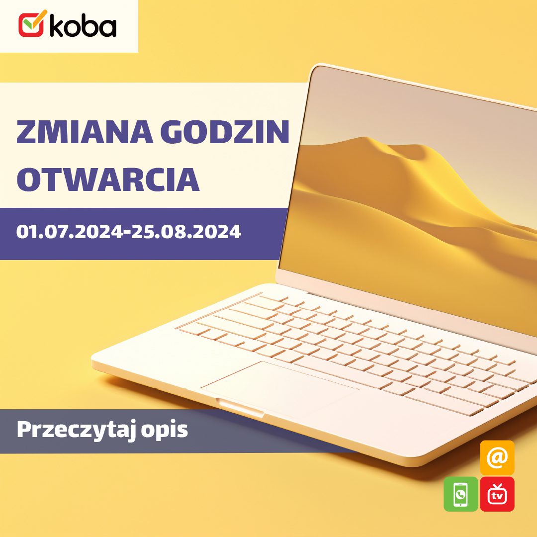 W okresie 30.06.2025 r. – 31.08.2025 r. godziny otwarcia Biura Obsługi Klienta i Serwisu Komputerowego w Białymstoku ulegają zmianie. Poniedziałek – Piątek 9:00-17:00 Sobota Nieczynne