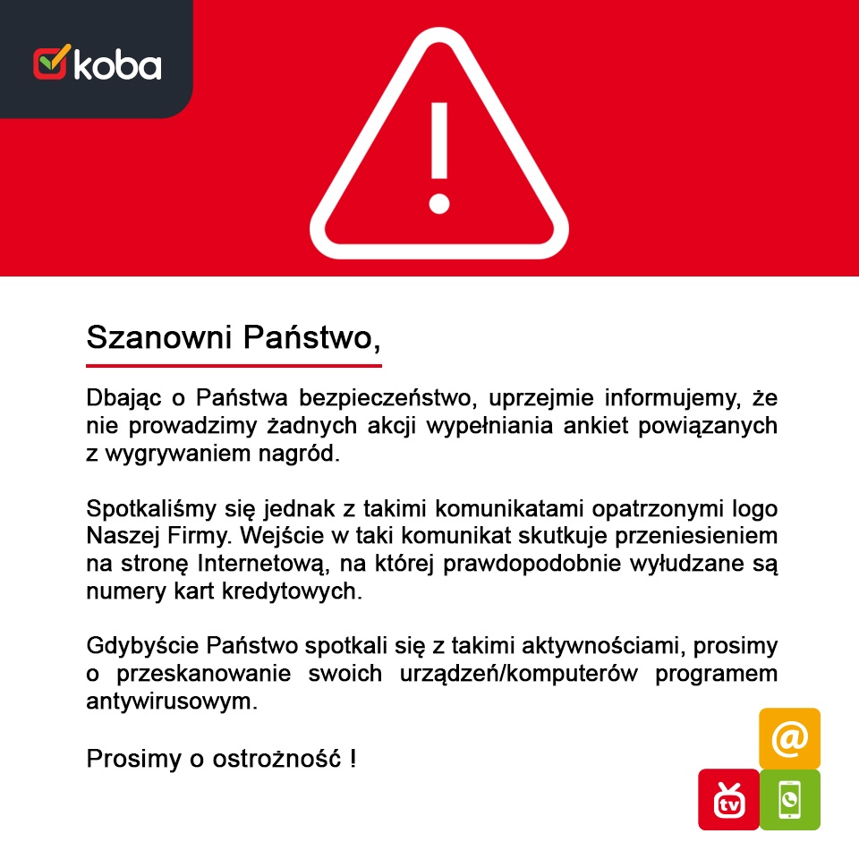 Dbając o Państwa bezpieczeństwo, uprzejmie informujemy, że nie prowadzimy żadnych akcji wypełniania ankiet powiązanych z wygrywaniem nagród.