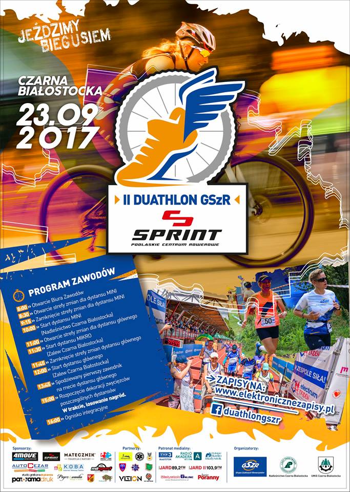 Grupa Szalonych Rowerzystów ma przyjemność zaprosić na II Duathlon GSzR Sprint Podlaskie Centrum Rowerowe który odbędzie się 23 września 2017 (sobota) nad Zalewem „Czapielówka” w Czarnej Białostockiej.
