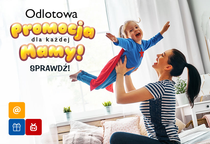 Zapraszamy do skorzystania z super promocji! Już od dziś podwajamy prędkość NET 50 do NET 100* wszystkim Mamom, które przy podpisaniu umowy podadzą hasło „Odlotowa Mama!”