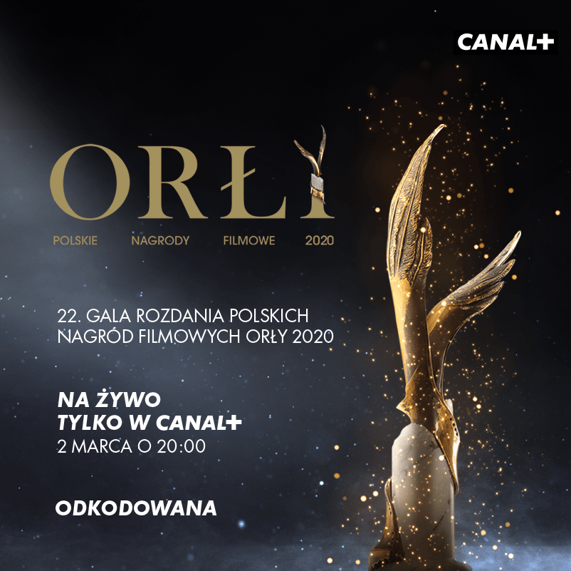 Przed nami Orły 2020! Z tej okazji, wspólnie z CANAL+, przygotowaliśmy pasmo odkodowane dla wszystkich abonentów. Serdecznie zapraszamy na transmisję gali, która odbędzie się w ramach 22 Polskich Nagród Filmowych.
