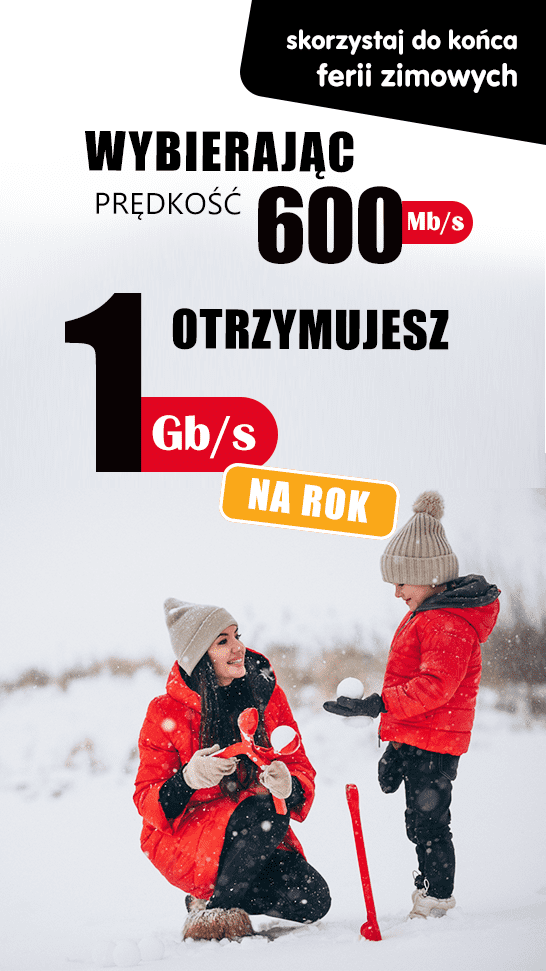 Zamów internet 600 Mb/s i otrzymaj 1 Gb/s na cały rok!