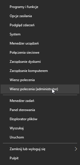 2. Wybierz opcję “Wiersz poleceń (administrator)