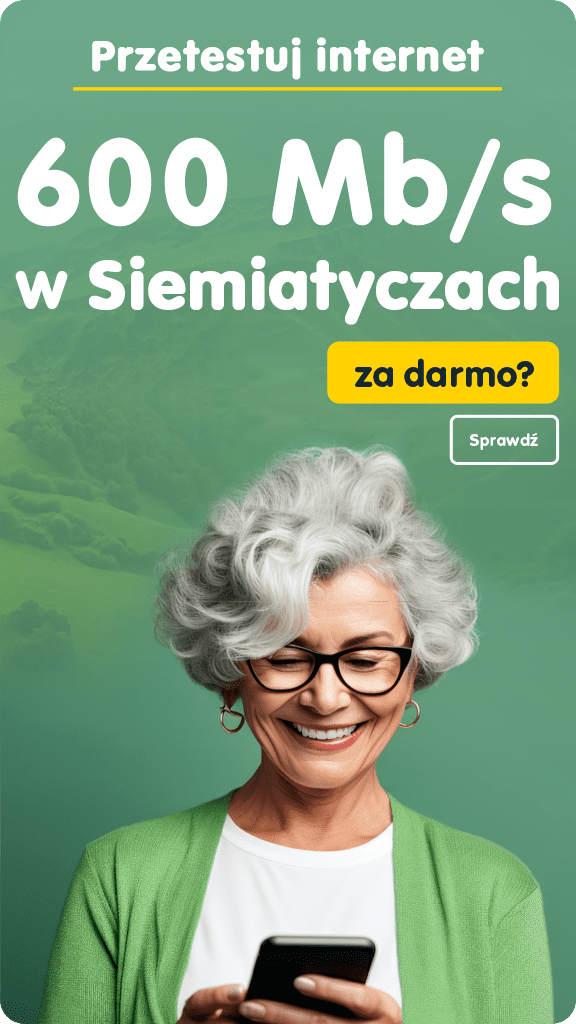 Odkryj Internet dostosowany do Twoich potrzeb! Jako firma Koba z radością prezentujemy specjalną ofertę dla seniorów w Siemiatyczach. Przekonaj się, jak łatwo i komfortowo można korzystać z Internetu światłowodowego, dostosowanego do unikalnych oczekiwań seniorów. Skorzystaj z bezpłatnego testu i doświadcz szybkości, niezawodności oraz przyjaznej obsługi klienta, stworzonych z myślą o Tobie. Oferujemy spersonalizowane pakiety, zniżki oraz dodatkowe korzyści, aby zapewnić Ci wyjątkowe doświadczenie korzystania z Internetu. Dołącz do naszej społeczności i ciesz się nowoczesnymi technologiami z Koba!
