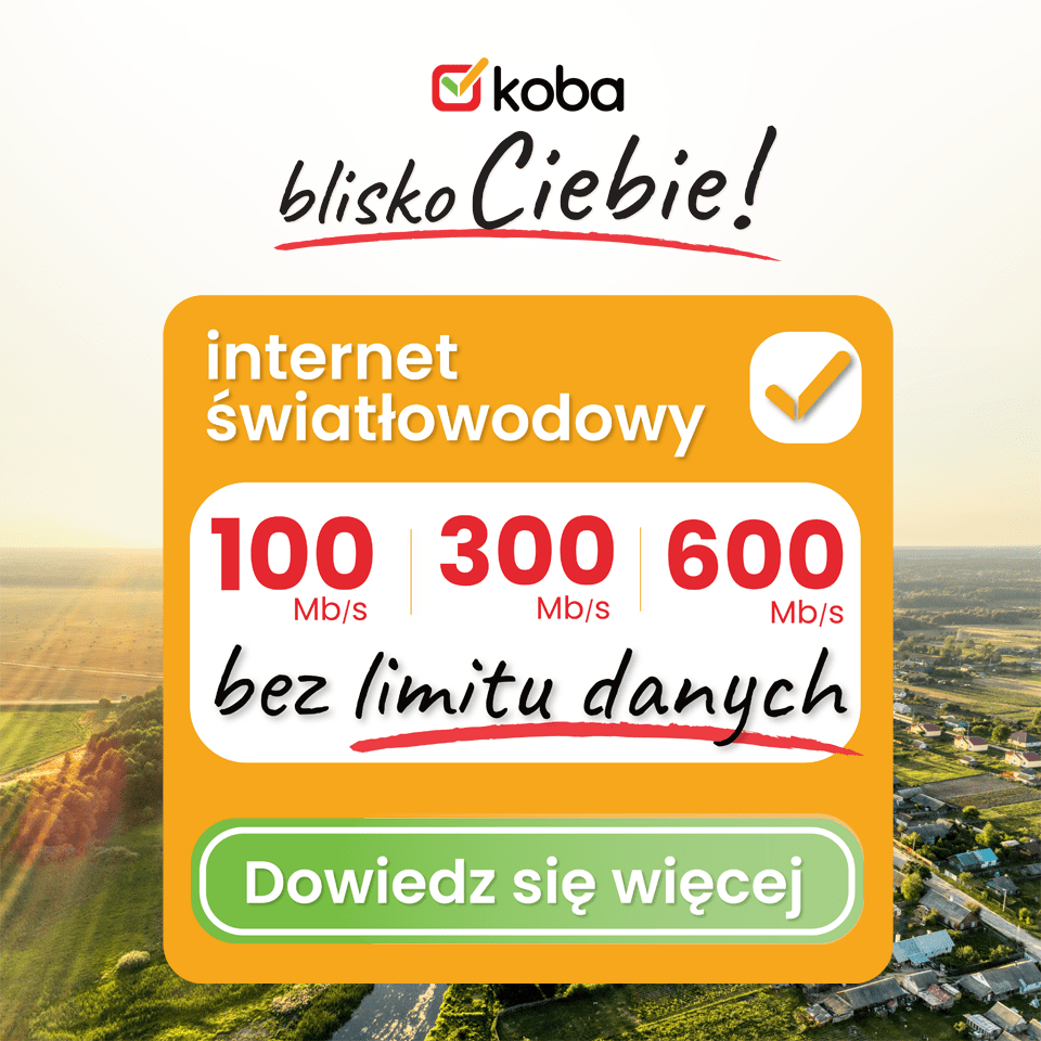 KOBA umożliwia stały dostęp do połączenia światłowodowego. Jest to gwarancja ULTRASZYBKIEGO i STABILNEGO łącza.
