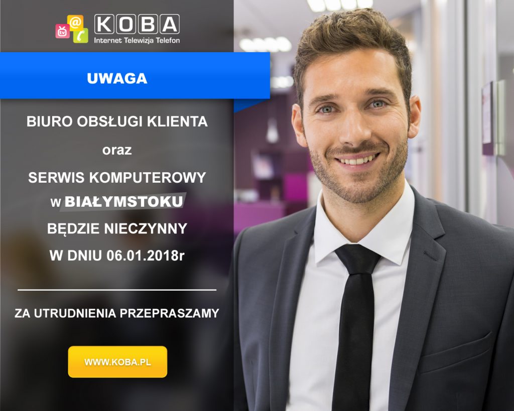 5 stycznia 2018 Uwaga! Białystok – zmiana godz. pracy Biura Obsługi Klienta oraz Serwisu Komputerowego (06.01.2018r.)