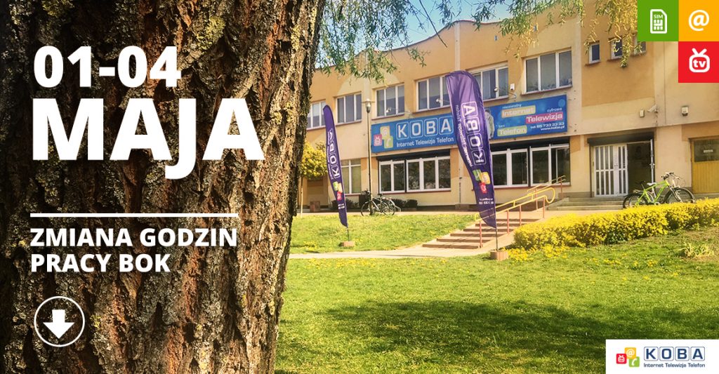 W związku z powyższym, informujemy o zmianie godzin pracy BOK i Serwisu Komputerowego w okresie od 1.05.2019 do 04.05.2019 :