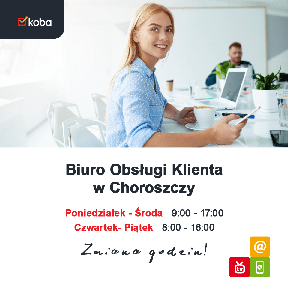 Z przyjemnością informujemy, iż Biuro Obsługi Klienta w Choroszczy pracuje 5 dni w tygodniu: