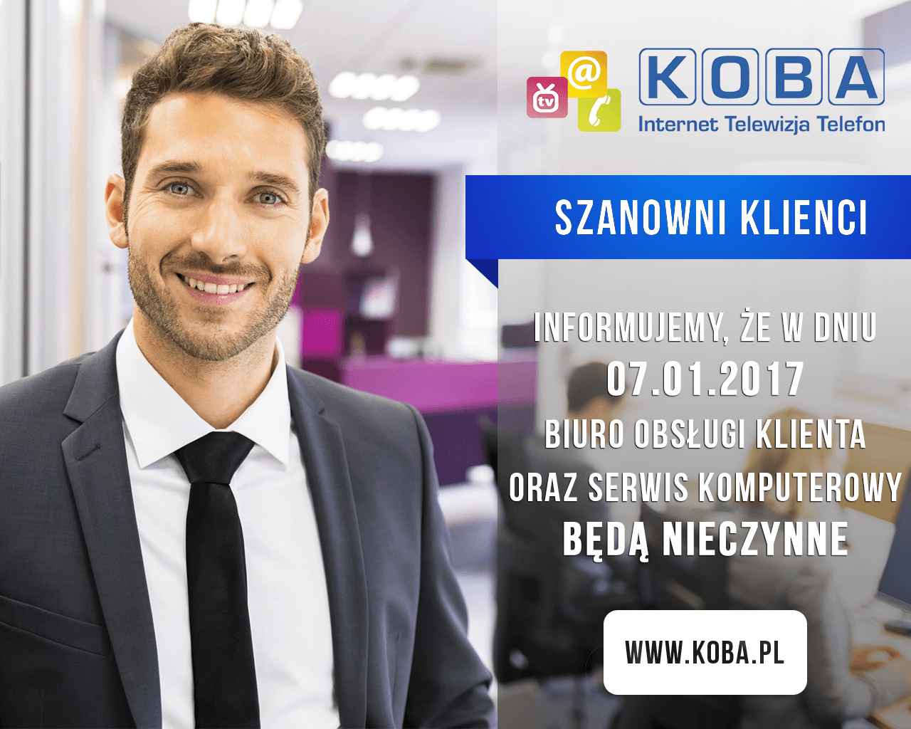 4 stycznia 2017 Uwaga! W dniu 07.01.2017r. Biuro Obsługi Klienta oraz Serwis Komputerowy będą nieczynne.