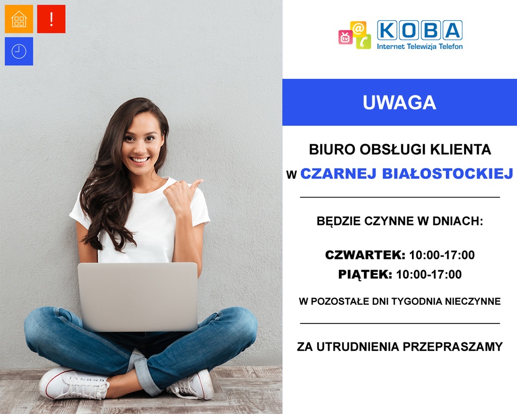 Informujemy, iż od dnia 28.09.2018r. Biuro Obsługi Klienta w Czarnej Białostockiej będzie czynne w dniu: