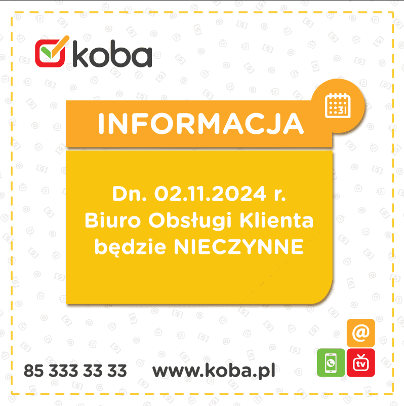 Zmiana godzin pracy 28 października 2024 Uwaga! Zmiana godzin otwarcia Biura Obsługi Klienta 02.11.2024 Uwaga! Zmiana godzin pracy 02.11.2024 Biuro Obsługi Klienta w Białymstoku Będzie nieczynne