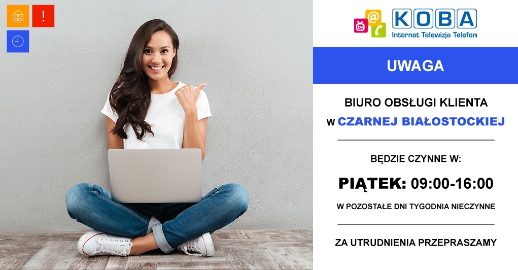 Uwaga! Biuro Obsługi Klienta w Czarnej Białostockiej od 01.02.2019r. będzie czynne w: