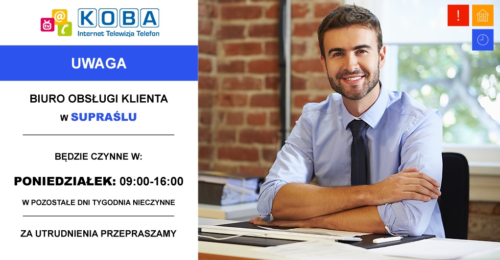 Uwaga! Biuro Obsługi Klienta w Supraślu od 11.02.2019r. będzie czynne w: