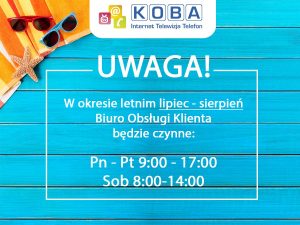 Uwaga! Zmiana godzin w okresie letnim lipiec – sierpień!