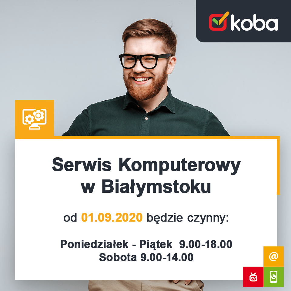 25 sierpnia 2020 Zmiana pracy Serwisu Komputerowego w Białymstoku Serwis Komputerowy w Białymstoku od 01.09.2020 będzie czynny: Poniedziałek – Piątek 9.00-18.00 Sobota 9.00-14.00